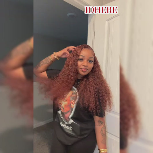 Reddish Brown Wig Human Hair 13x4/13x6 Curly Wig 33# Color Auburn Deep Wave Human Hair Wigs