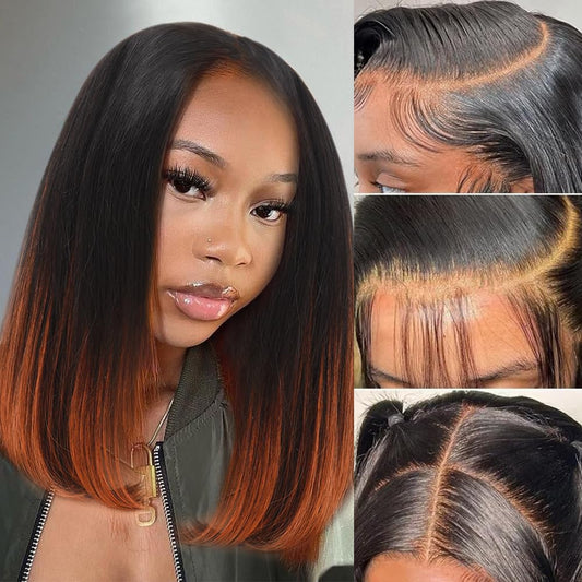1B/350 Ginger Orange Ombre Short Bob Lace Front Human Hair Wig Straight Lace Closure Wigs