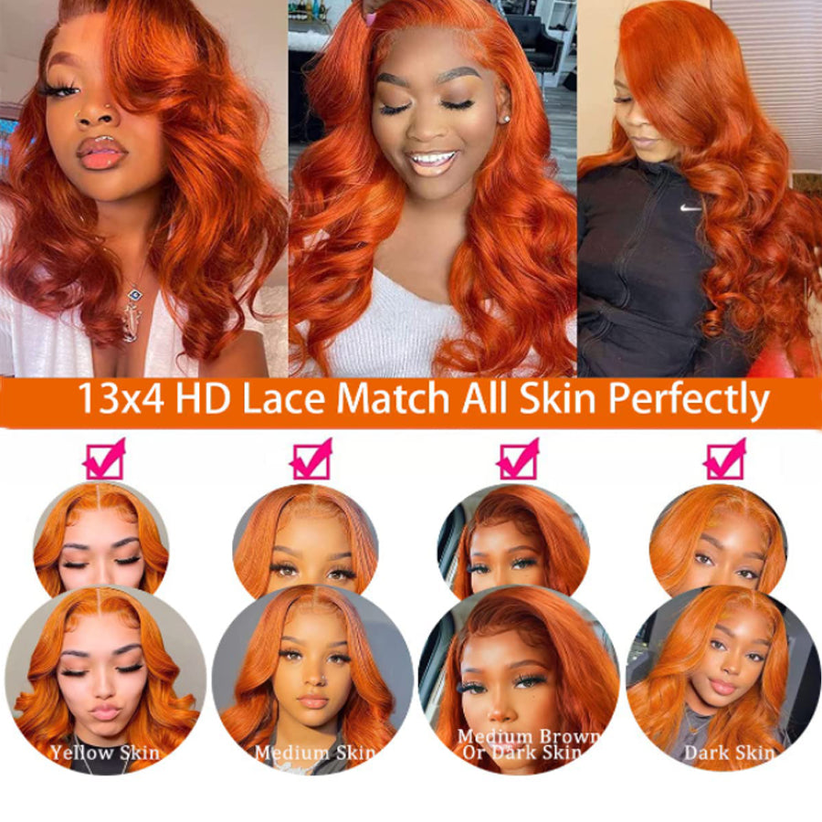 Ginger Orange 13x4 HD Lace Front Body Wave Human Hair Wigs Pre Plucked With Baby Hair