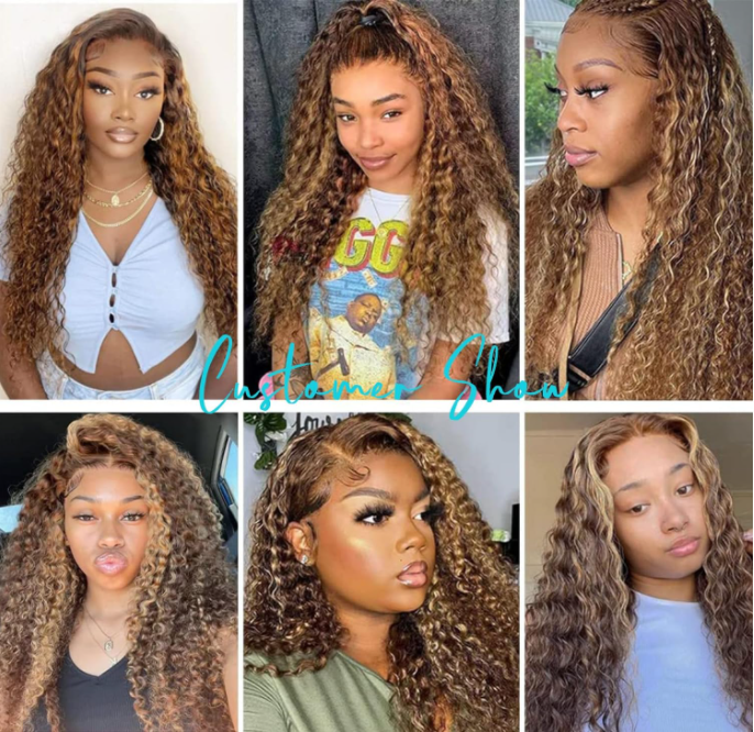 Highlight Lace Front Wigs Deep Wave #4/27 Ombre Colored Curly Water Wave Lace Human Hair Wig